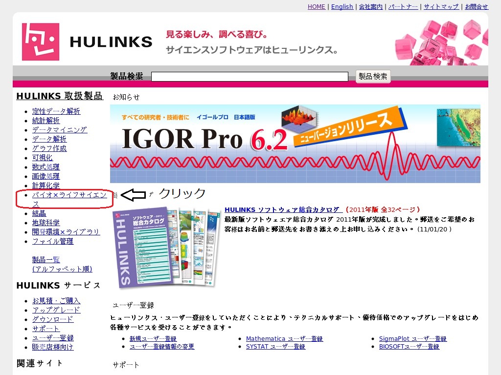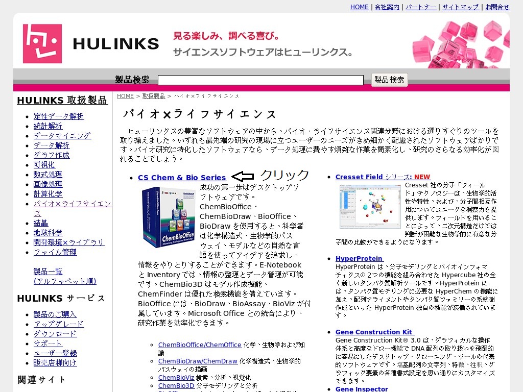 ②左のメニューにある、バイオ×ライフサイエンスをクリックします